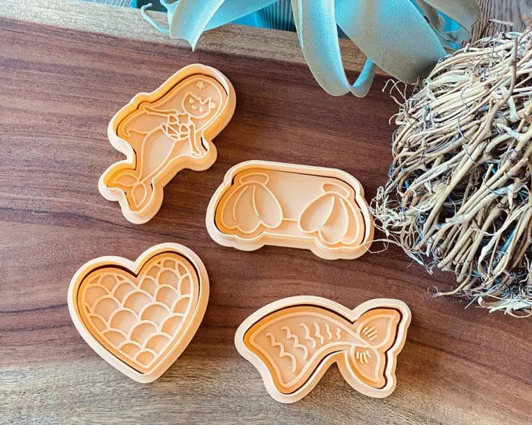 Onze uitstekers en stempels zijn 3D geprint van voedselveilig en biologisch afbreekbaar materiaal. Ze kunnen afgewassen worden met handwarm water, vormpjes niet laten weken of in de vaatwas steken.